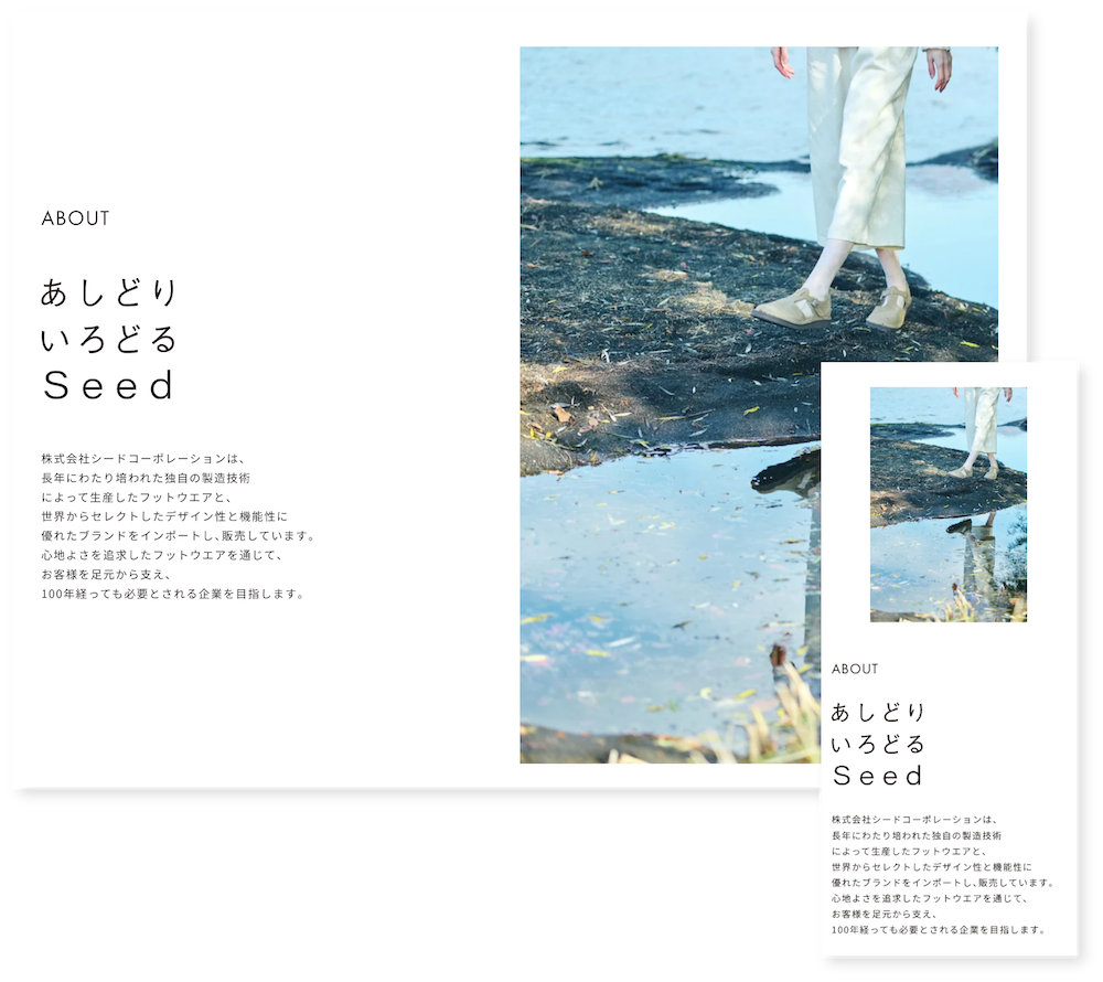 The SEEDグループの一員としてシューズ・サンダルの輸入・卸・販売事業を営む、株式会社シードコーポレーション。多くの有名ブランドの日本総代理店としての実績を積み重ねてきた企業です。ロゾパンサンは、コーポレートサイトのリニューアルを担当しました。