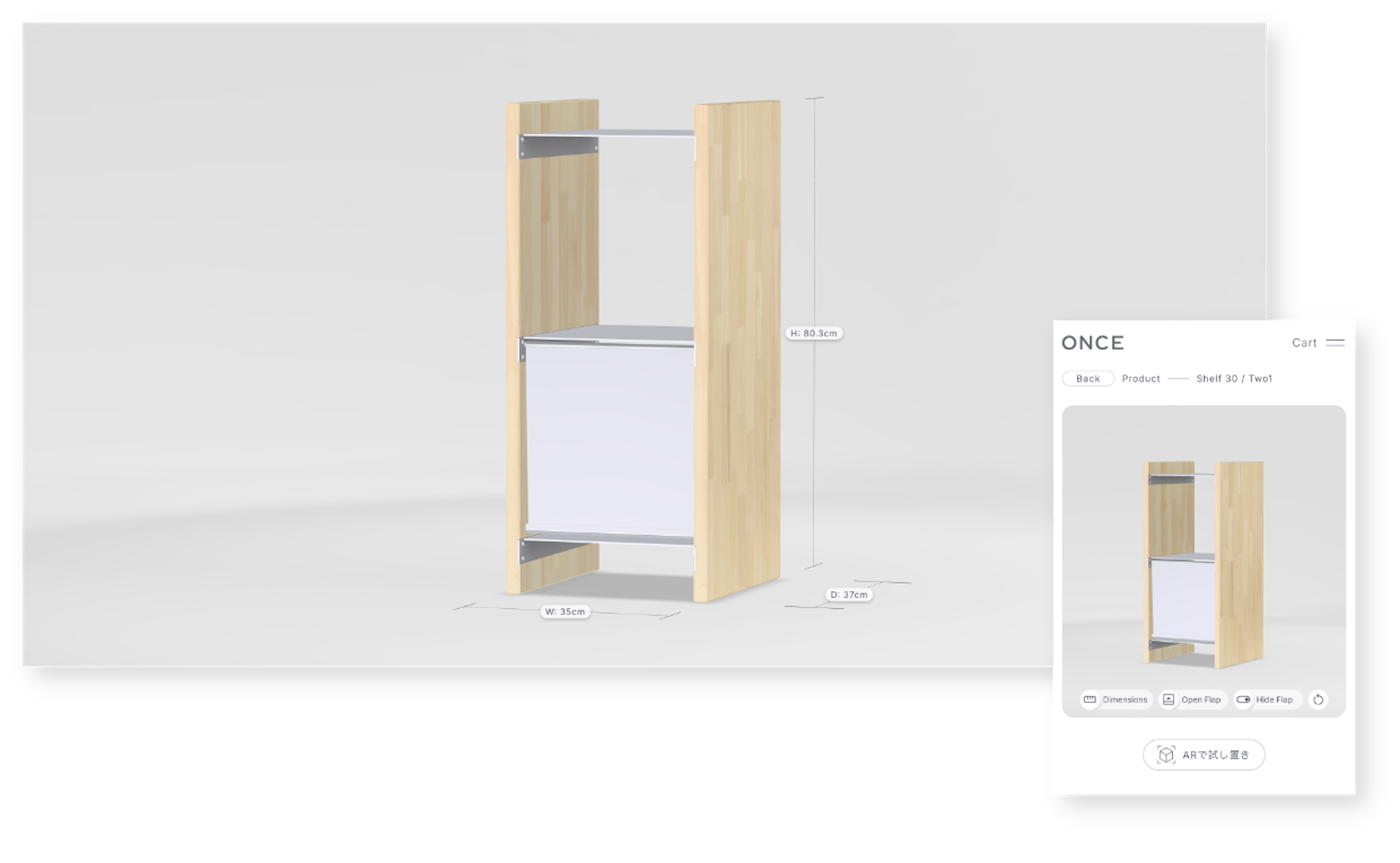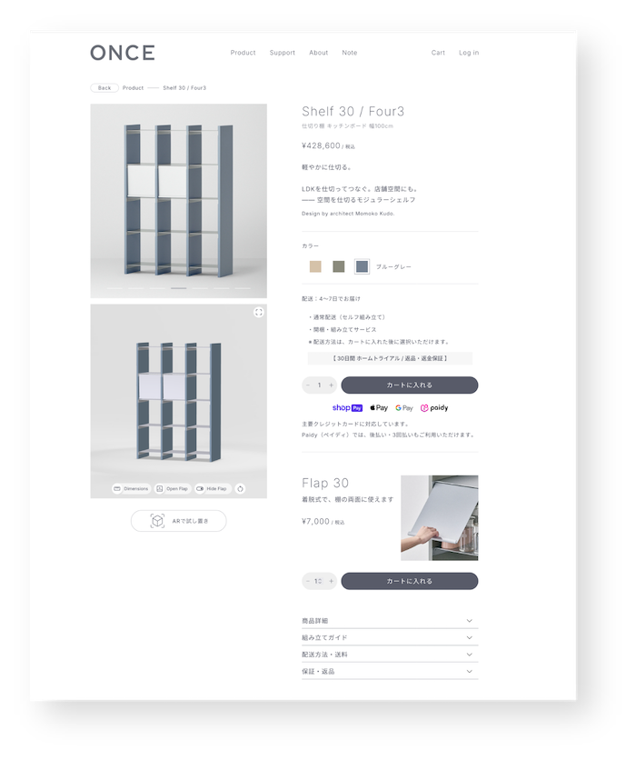ブランドの世界観を保ちつつ、商品の情報がより伝わりやすいECサイトへと整理。また、ECでの購買体験を高める取り組みとして、AR機能を搭載し、オンライン上でもシェルフのサイズ感や空間への収まりを確認可能に。インテリア購入時の不安を解消し、安心して選べる購買体験を提供しています。